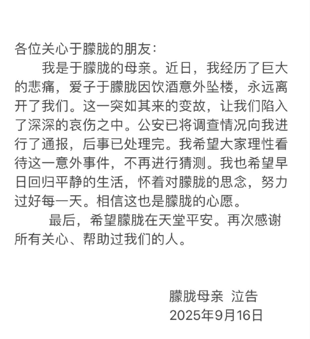 Sau hơn 10 ngày điều tra, Cục Công an Bắc Kinh công bố Vu Mông Lung tử vong do ngã trong trạng thái say rượu, không có dấu hiệu hình sự.