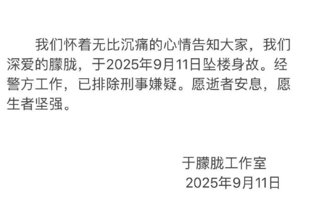 Ngày 11/9/2025, làng giải trí Hoa ngữ chấn động khi anh được phát hiện tử vong sau cú ngã từ tầng cao tại Bắc Kinh. Tin tức nhanh chóng lan truyền trên mạng xã hội Weibo, khiến hàng triệu người hâm mộ bàng hoàng và tiếc thương.